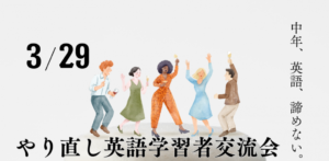 - イベント詳細 40代から英語をやり直している皆さんの、ゆるいオンライン交流会。2月はインフル、3月は花粉…この季節、英語どころじゃない日もありますよね。そんな時でも「私はこうやって英語に触れてます」と...