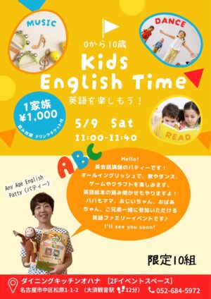 - 2026.5/9AnyAgeEnglishキッズ英語イベント Kids English Time〜英語を楽しもう!〜 出国前のお子様の英語準備に!オールイングリッシュで、歌やダンス、ゲームやクラフト...